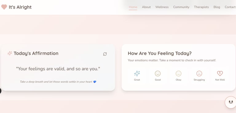 If you want to read the complete idea and vision behind this project, click here to explore the idea behind It’s Alright — a mental health website built around emotional well-being and meaningful conversations.
